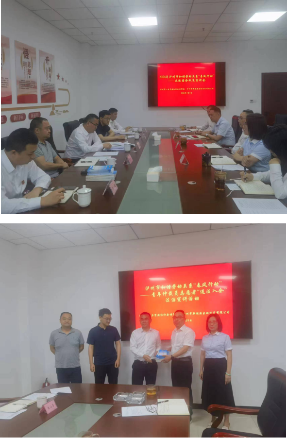 5月8日,市人社局勞動人事爭議仲裁院、勞動關系科、調解仲裁科等相關負責人,前往瀘新公司開展“送法入企”法治講講活動,并與公司相關負責人和職工代表進行了座談交流。瀘新公司總經理田英詳細介紹了企業(yè)經營狀況、規(guī)章制度、用工形式、合同簽訂等方面情況。